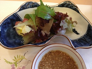 手のこった盛り付け♡ 自家製ポン酢にゴマをたっぷり入れて召し上がれと