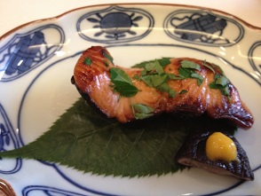 焼き物 にじます! お魚の下には桜の葉がほんのりいいカンジ