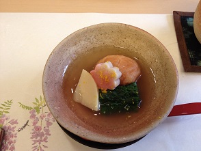 お料理最後に 桜海老、筍、わさび菜の炊き合わせ