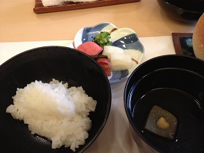 ご飯~~~~ 土鍋炊き~の赤だし漬物付きです!